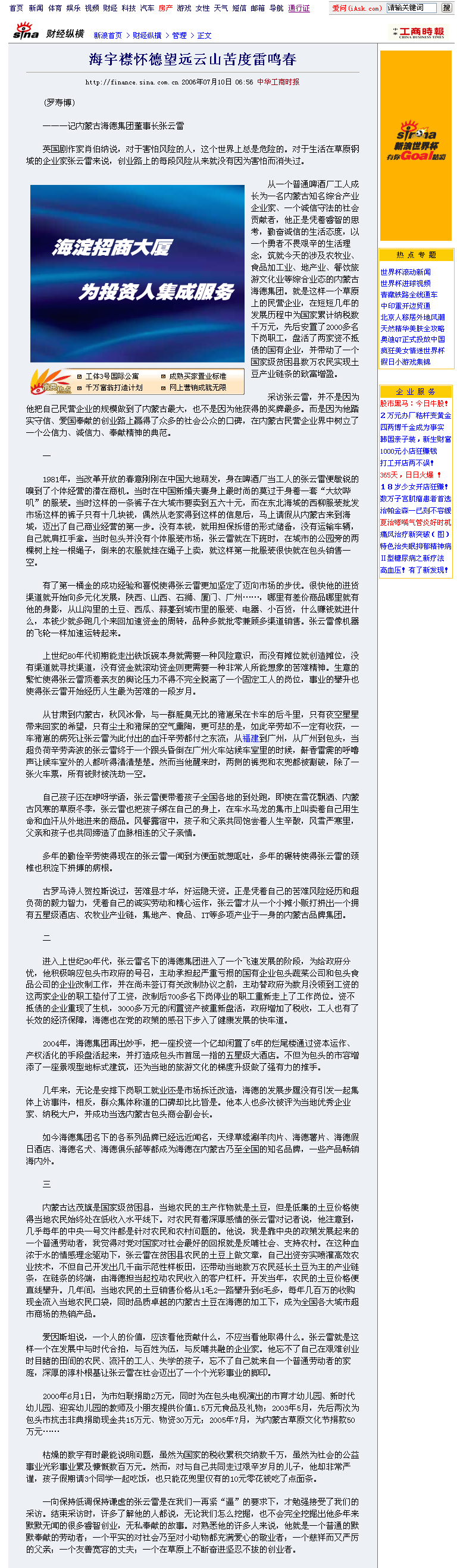 海宇襟怀德望远 云山苦度雷鸣春 ———记内蒙古海德集团董事长张云雷