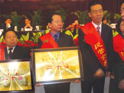 3月2号,在全市人民贯彻中共包头市委十届二次全委会议精神,落实科学发展,再谱富民强市新篇章之际,市委、市政府隆重召开“全市第三产业暨非公有制经济合作会议”。我集团公司应邀参加了此次会议,在大会上市委、市政府对我集团公司及各子公司(海德酒店、海德食品、天绿草缘股份公司)的发展给予了充分的肯定,同时也寄予很高的期望,并授予我集团公司包头市“二十强民营企业”称号,分别授予“海德酒店”及“天绿草缘股份有限公司生猪屠宰场”为2006年度全市发展服务业“先进企业”称号。本次大会既是发展第三产业和非公有制经济的总结会、表彰会,更是一次动员会和激励会。既是对海德集团的鼓励,也是鞭策。在党和政府的关怀下,海德集团一定会再接再厉,不负众望,认真履行职责,继续发挥优势,全力推进全市非公有制经济再创辉煌!为实现“建成经济强市、构建和谐包头”的目标而不懈奋斗!