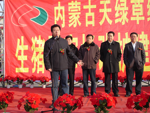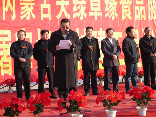 在庆典仪式上海德集团公司杨继刚副总裁首先发布了讲话,在讲话中杨继刚副总裁提到:天绿草缘公司由原包头市食品总公司与内蒙古海德实业集团公司共同组建的集产、加、销为一体的肉类连锁经营的股份制企业,公司注册资本2000万元(人民币),由海德集团公司控股。公司占地18万平方米,拥有自治区内最大的万吨级冷库,3.15公里铁路专用线贯穿公司大院,铁路站台面积5218平方米,可同时装卸两列车货物。资产优良、设备先进、设施齐全、位置优越,具有很大的发展潜力。