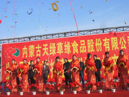 2007年1月8日,内蒙古天绿草缘食品股份有限公司又迎来了一个大喜的日子。伴随着清晨冉冉升起的太阳,天绿草缘公司定点屠宰场改、扩建工程竣工典礼仪式的拉开了帷幕。