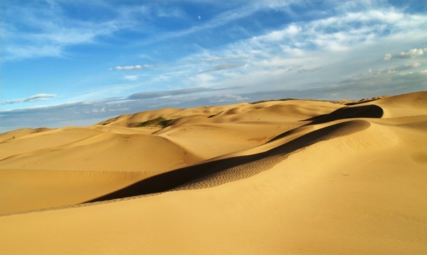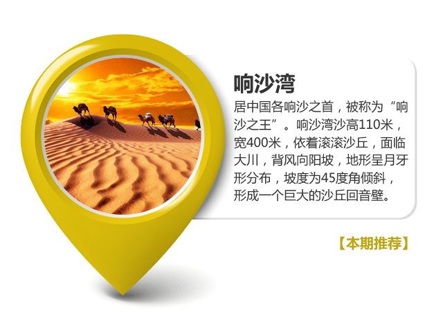 银肯响沙(即响沙湾)居中国各响沙之首,被称为"响沙之王"。响沙湾沙高110米,宽400米,依着滚滚沙丘,面临大川,背风向阳坡,地形呈月牙形分布,坡度为45度角倾斜,形成一个巨大的沙丘回音壁。沙子干燥时,游客攀着软梯,或乘坐缆车登上"银肯"沙丘顶,往下滑溜,沙丘会发出轰隆声,轻则如青蛙"呱呱"的叫声,重则像汽车、飞机轰鸣,又如惊雷贯耳,更像一曲激昂澎湃的交响乐。 响沙湾的沙鸣奇迹至今仍是一个谜团,千百年来,人们解释不了响沙的成因,却赋予它许多美丽的传说。